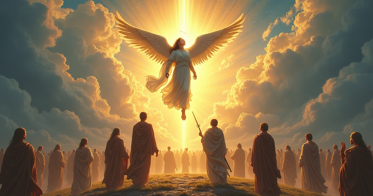 Let’s begin with what we see: an angel, usually Gabriel, sounding a trumpet from the heavens. Below, figures rise from coffins, arms outstretched. The pale mountains in the distance and the banners in the sky lend a sense of awe—a kind of sacred announcement fills the scene. Everything about the imagery evokes interruption and awakening. There are no secrets here, just the clarity of a new day breaking open the old.