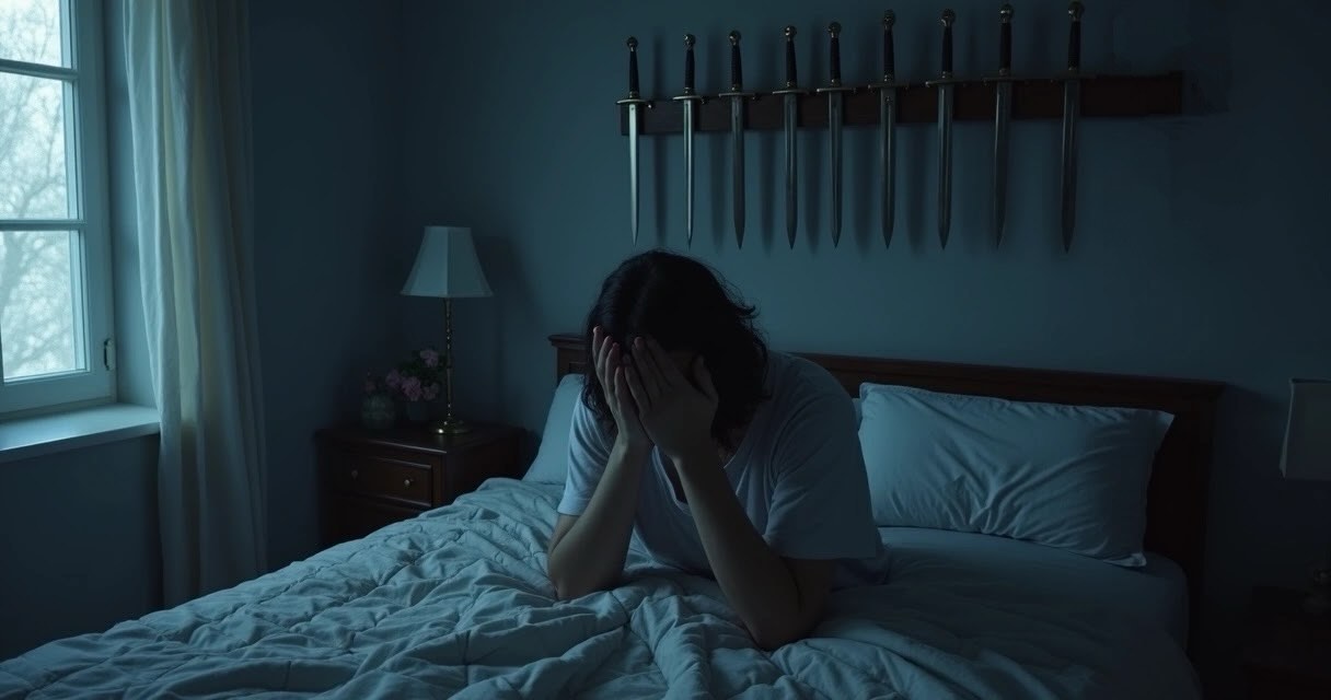 Yet, the swords on the wall are not actively threatening. This hints to us that with support, honesty, and self-compassion, relief can start to appear. The message isn’t “all is lost,” but “what must be faced for peace to return?”