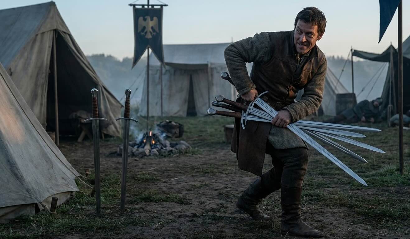 This card’s imagery—a figure sneaking away with swords—symbolizes clever moves, evasion, or misdirection. In a reading, it can mean someone is withholding information, bending the truth, or trying to gain advantage behind the scenes. It may also signal a warning to pay attention to the motivations and methods involved, rather than outright actions alone.