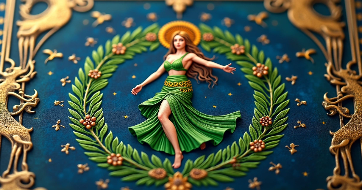 - Colors such as blue, green, and gold, suggesting harmony and victory